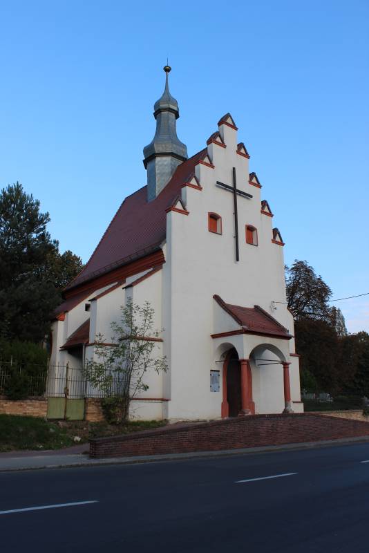 Pierwsze wzmianki o kościele datuje się na 1341 r. Początkowo była to drewniana kaplica z pustelnią, którą zburzono w 1633 r. Na jej miejscu w 1639 r. wzniesiony został kościół murowany. Kościół ulokowany jest według miary jerozolimskiej, jest też orientowany. Uszkodzona przez huragan wieża kościoła odbudowana została w 1678 r. przez J. Hoertlinga z Nysy. Pod koniec XVII w. kościół powiększono o transept i zakrystię. Budowla wzniesiona została w stylu gotyckim z elementami późnorenesansowymi i barokowymi. Do roku 1945 było to miejsce pielgrzymek w Wielki Piątek każdego roku. Na przestrzeni ostatnich trzech wieków kościół był wielokrotnie odnawiany.