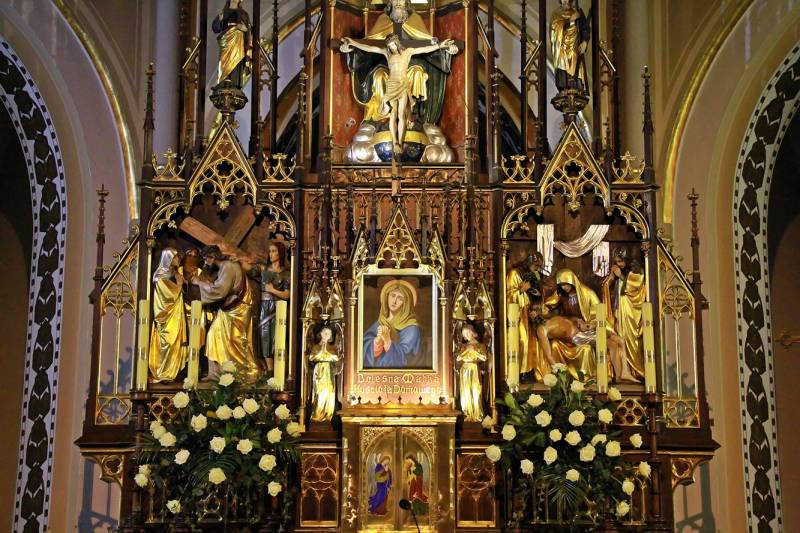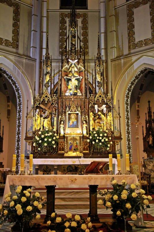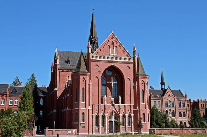 188459184504279Neogotycki kościół powstał w 1906 r., wchodząc w skład zespołu klasztornego werbistów. Budowniczym kościoła był Hermann Fisher. Budowla została wzniesiona na potrzeby powstającego seminarium duchownego. Uroczysta konsekracja została dokonana przez kardynała Adolfa Bertmana z Wrocławia. Od roku 1941 kościół stał się główną świątynią kuracji Św. Krzyża. Do najcenniejszych zabytków należy zaliczyć bogato zdobioną monstrancję, drewnianą obudowę całego chóru oraz ambonę.