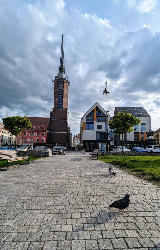 Ratusz – pierwszy ratusz wybudowany został w wieku XIV. Rozbudowano go wiek później. W swojej historii często ulegał zniszczeniu np. w 1590 roku z powodu trzęsienia ziemi. Po zajęciu miasta przez Prusy, król Fryderyk II nakazał jego rozebranie, pozostała tylko ok. 90 metrowa wieża. Jej los został przesądzony w 1945 roku, kiedy to prawie całkowicie uległa zniszczeniu. Resztki wieży, tzw. „kikut”, wysadzono w 1966 roku. W 2008 roku zakończono budowę nowej wieży wzorowanej na pierwowzorze. Jej wysokość to 78 metrów wraz z iglicą i stanowi znakomity punkt widokowy na całe miasto.