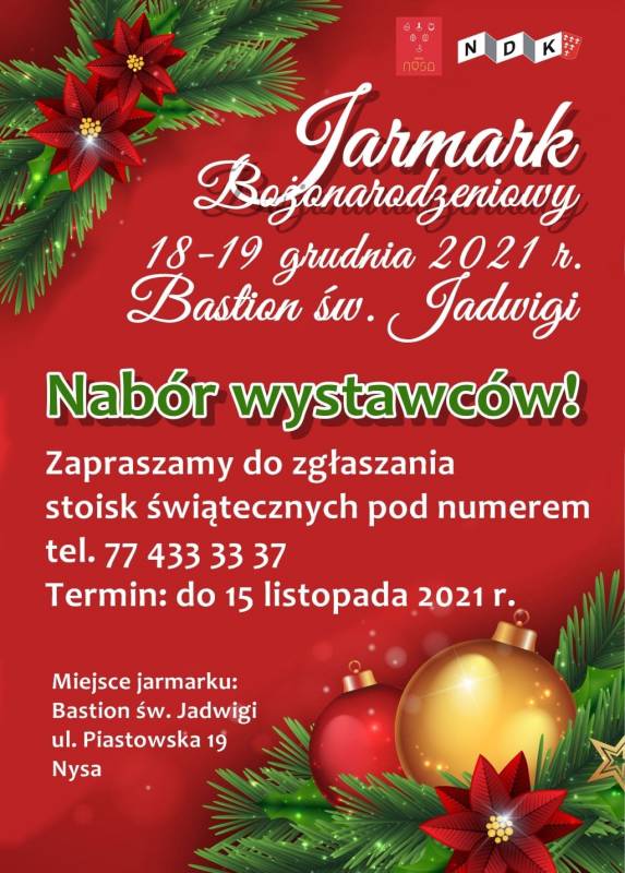 Do Świat Bożego Narodzenia pozostały jeszcze dwa miesiące, ale zawczasu trzeba organizować świąteczne Jarmarki. Tak właśnie robi Nyski Dom Kultury, który zaprasza wystawców do zgłaszania swoich stoisk. Można to zrobić do 15 listopada. W zeszłym roku Jarmark Bożonarodzeniowy nie odbył się ze względu na pandemię. W tym roku wydarzenie powraca do Bastionu św. Jadwigi. Jarmark odbędzie się w dniach 18-19 grudnia. Wystawcy znów przygotują moc atrakcji, od pysznego tradycyjnego jedzenia, po choinki, stroiki i rozmaite ozdoby. Nie zabraknie pysznych pierogów, słodkości i miodów wprost z lokalnych pasiek. Będzie też sporo atrakcji dla najmłodszych, a tą największą będzie oczywiście św. Mikołaj. Sympatyczny staruszek z Laponii przygotuje dla dzieciaków masę niespodzianek.