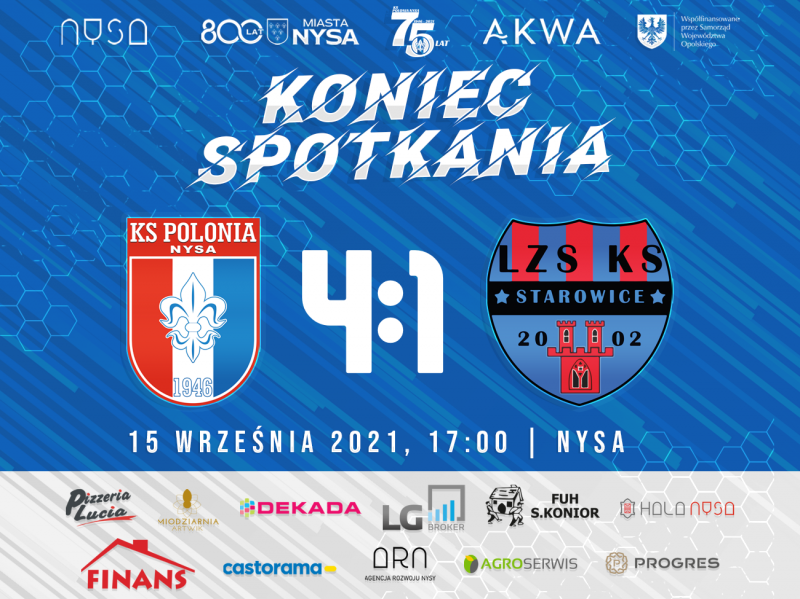 Polonia Nysa idzie jak burza! W siedmiu spotkaniach nyski zespół tylko raz stracił punkty. Wczoraj Polonia pokonała przy Sudeckiej LZS Starowice 4:1. Podopieczni Łukasza Czajki są istną maszyną do wygrywania w tym sezonie. Na 7 ligowych spotkań Polonia wygrała 6. Ma także imponujący bilans bramkowy. Nasi piłkarze strzelili rywalom aż 18 bramek, tracąc zaledwie jedną. Polonia Nysa przewodzi w tabeli IV ligi opolskiej. Wyprzedza o 4 punkty Ruch Zdzieszowice (rywale mają do rozegrania jeden zaległy mecz) oraz o 6 oczek Polonię Głubczyce. Kolejny ligowy mecz nasi piłkarze zagrają już w najbliższą sobotę, 18 września. Ich rywalem w wyjazdowym spotkaniu będzie zespół KS Małapanew Ozimek. Grafika: Polonia Nysa