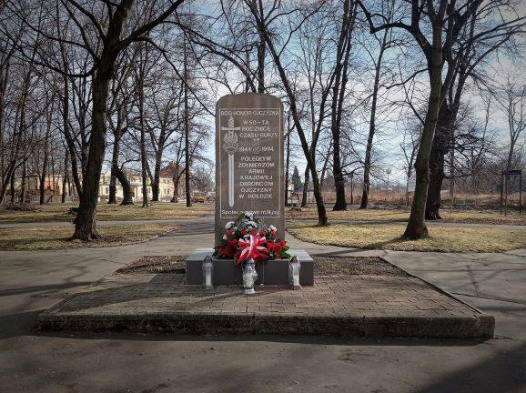 Pomnik to obelisk kamienny. Na nim tablica z pamiątkowym napisem "Bóg - Honor - Ojczyzna". Wykuty miecz z orłem wojskowym w koronie, obok napis: "W 50-tą Rocznicę Czasu Burzy 1944-1994 Poległym Żołnierzom Armii Krajowej Obrońcom Ojczyzny w Hołdzie Społeczeństwo Miasta Nysy".