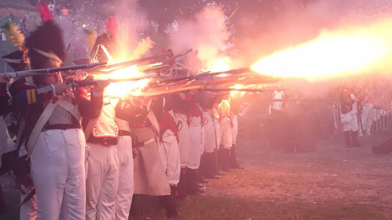 Tym razem wielka bitwa zrodziła się z bójki w karczmie. Przez lunetę widział to sam Napoleon, który chwilę potem wydał rozkaz do ostrzału. Atakujących było dwa razy więcej, niż obrońców, stąd wynik potyczki mógł być tylko jeden. Mimo to, obrońcy twierdzy długo nie dawali za wygraną. W czasie inscenizacji nie zabrakło humorystycznych akcentów. Co roku poszczególne regimenty wykazują się nie lada pomysłowością. Po bitwie gościom podziękowano kolejnymi salwami. Były wspólne fotografie i biesiadowanie do rana.