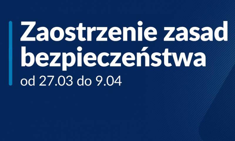 W ostatnim czasie obserwujemy wyraźny wzrost zakażeń, któremu towarzyszy zwiększona liczba zajętych łóżek oraz respiratorów i przede wszystkim wzrost liczby zgonów. Obecna sytuacja w Polsce wymaga zdecydowanych działań. Od soboty, 27 marca będą obowiązywać nowe zasady bezpieczeństwa. Obowiązywać będą do 9 kwietnia, czyli obejmą także okres Świąt Wielkanocnych.