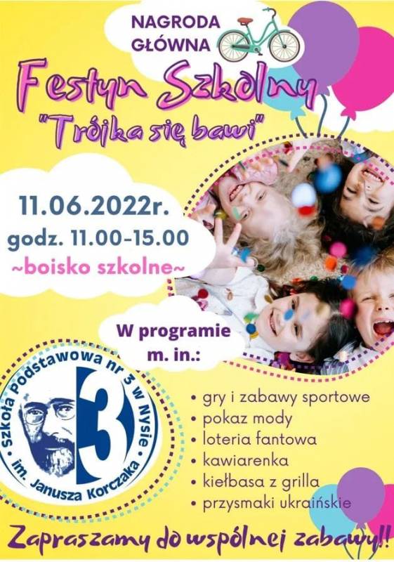 Po długiej przerwie powraca bardzo lubiany festyn w Szkole Podstawowej nr 3 w Nysie. Warto zarezerwować sobie czas w najbliższą sobotę. Będą gry i zabawy sportowe, pokaz mody, loteria fantowa, kawiarenka, pyszna kiełbasa z grilla i ukraińskie przysmaki. Początek zabawy o godz. 11.00.