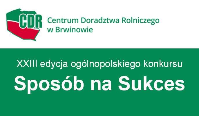 Centrum Doradztwa Rolniczego w Brwinowie ogłasza XXIII edycję ogólnopolskiego konkursu "Sposób na Sukces". na najlepsze działania kreujące przedsiębiorczość na obszarach wiejskich. Inicjatywie tej od 2011 roku patronuje Prezydent Rzeczypospolitej Polskiej. Termin zgłoszenia udziału w konkursie upływa 15 kwietnia 2023 roku. Uruchomienie i zrealizowanie przedsięwzięcia zgłaszanego do konkursu powinno się mieścić w okresie od 1 lipca 2021 r. do 28 lutego 2023 roku.  Ideą konkursu  jest promocja: przedsiębiorczości na obszarach wiejskich i w miastach do dwudziestu tysięcy mieszkańców; innowacyjnych rozwiązań sprzyjających podnoszeniu jakości życia na obszarach wiejskich, będących przykładami tworzenia i wdrażania „innowacji”; działań na rzecz ograniczania skutków niekorzystnych zmian klimatu; włączenia społecznego, zmniejszenia ubóstwa na obszarach wiejskich, ze szczególnym wsparciem zatrudniania osób z grup defaworyzowanych na rynku pracy; przedsięwzięć efektywnie zrealizowanych przy wsparciu Programu Rozwoju Obszarów Wiejskich i innych programów pomocowych. Szczegółowych informacji udzielają pracownicy Działu Organizacyjnego, tel. 22 125 62 01, 22 125 62 02