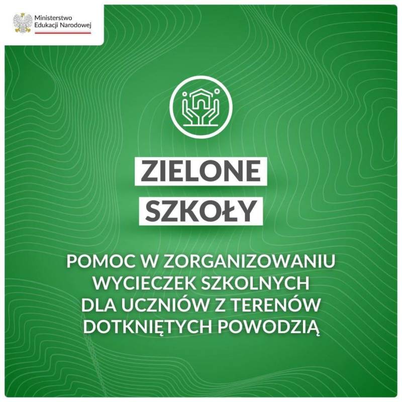 Szkoły poszkodowane w wyniku powodzi mogą zgłaszać chęć organizacji pobytu dla swoich uczniów i uczennic. W Strefie Pracownika Systemu Informacji Oświatowej (SIO) została udostępniona ankieta https://strefa.ksdo.gov.pl, która umożliwi określenie potrzeb poszczególnych szkół. Za koordynację działań w imieniu MEN odpowiada Fundacja Rozwoju Systemu Edukacji (FRSE). Na stronie internetowej zieloneszkoly.men.gov.pl utworzono bazę ofert wypoczynku i zajęć ze strony zarówno instytucji publicznych jak i sektora prywatnego. Dzięki temu możliwe będzie skierowanie pomocy do uczniów, którzy najbardziej jej potrzebują. Zależy nam na tym, aby w trudnym dla nich okresie dzieci i młodzież wspólnie z opiekunami znaleźli się w bezpiecznym i przyjaznym miejscu. Nasze działania podejmujemy we współpracy z partnerami, m.in. Ministerstwem Sportu i Turystyki, Ministerstwem Infrastruktury oraz spółką PKP Intercity. Do włączenia się w organizację „Zielonych szkół” zachęcamy samorządy i inne podmioty. Wyjazdy uczniów będą organizowane na podstawie przepisów rozporządzenia Ministra Edukacji Narodowej z dnia 25 maja 2018 r. w sprawie warunków i sposobu organizowania przez publiczne przedszkola, szkoły i placówki krajoznawstwa i turystyki. W działania włączeni są wszyscy kuratorzy oświaty, którzy będą czuwać nad bezpieczeństwem dzieci i młodzieży. Przypominamy też, że dzieci i młodzież, rodzice uczniów, a także nauczyciele z terenów dotkniętych powodzią mogą korzystać ze wsparcia psychologicznego pod numerem telefonu: 22 347 48 97.