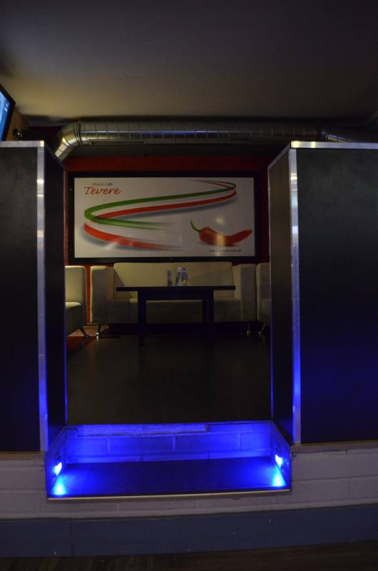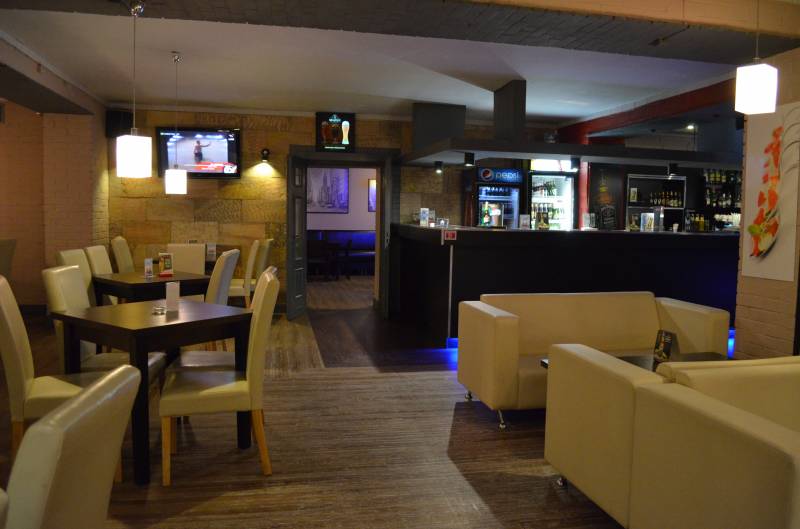 W menu restauracji znajdziemy szeroką ofertę pizz, burgerów, bagietek, sałatek, makaronów, ryb, dań wegetariańskich i mięsnych. Tevere mieści się w samym centrum miasta w budynku Ratuszu. Lokal składa się z dwóch sal – większej i mniejszej.