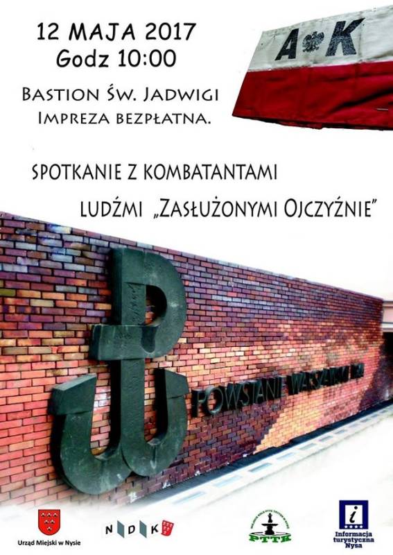 Zapraszamy w piątek, 12 maja do Bastionu św. Jadwigi na spotkanie z kombatantami - ludźmi "Zasłużonymi Ojczyźnie". Spotkanie odbędzie się o godzinie 10.