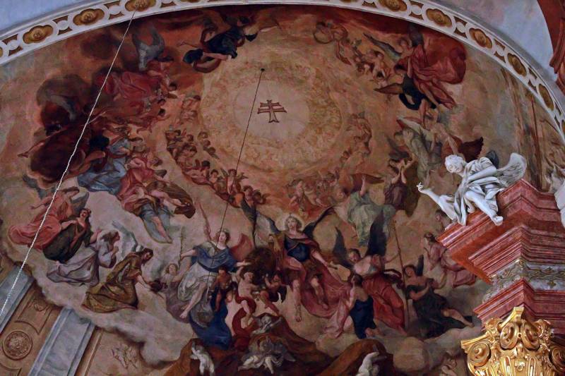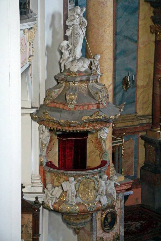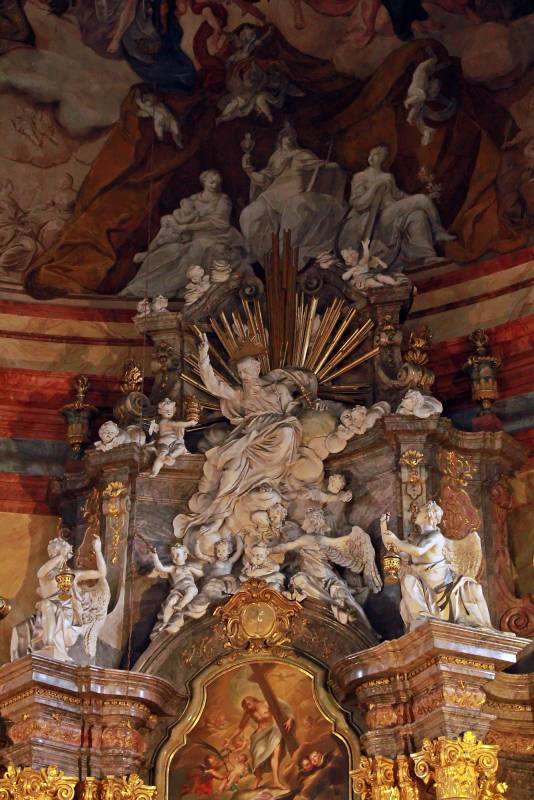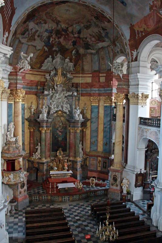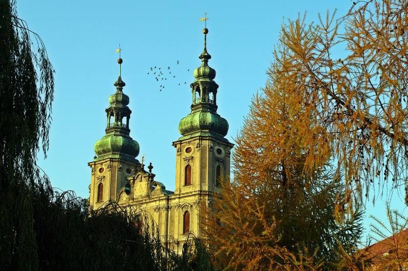 Die Kirche wurde in den Jahren 1720-1727 von dem Ritterorden vom Heiligen Grab zu Jerusalem laut einem Entwurf von Michael Klein errichtet. Die Kirche wurde im Barockstil erbaut und ist geostet. Das Innere weist spätbarocke Züge auf, sichtbar sind auch die klassizistischen sowie aus der Zeit des Rokokos stammenden Ornamente. Der aus der Rokokozeit aus dem Jahr 1765 stammende Orgelprospekt ist ein Werk von Wilhelm Scheffler. Auf dem Gewölbe kann man spätbarocke, illusionistische Polychromien aus dem Jahr 1730, die von Christoph Thomas Scheffler und Felix Antoni Scheffler erschaffen wurden, bewundern. Im hinteren Teil der Kirche befinden sich die Heilig-Grab-Kapelle und darin ein Rokokoaltar mit einer Christusfigur aus Glas und einer für den Ritterorden vom Heiligen Grab zu Jerusalem typischen Kopie des Heiligen Grabes. An der Kirche befindet sich auch das ehemalige Kloster des Ritterordens vom Heiligen Grab zu Jerusalem aus dem Jahr 1708 und eine aus dem Jahr 1737 stammende Statue des Heiligen Johannes von Nepomuk.