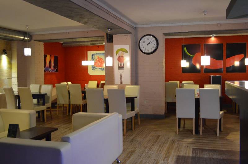 In der Speisekarte findet man ein breites Angebot an Pizzas, Burgern und Baquettes, Salaten, Nudel-, Fisch- und Fleischgerichten und vegetarischen Speisen. Das Restaurant „Tevere“ befindet sich im Zentrum der Stadt, im Rathaus. Den Gästen stehen zwei Säle – ein grosser und ein kleiner – zur Verfügung.