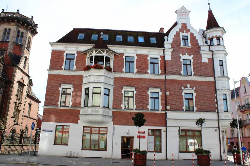 The Tax Office in Nysa is located in the immediate vicinity of the Post Office No 1. The Tax Office’s building is characterised by the beautiful, restored façade. At the peak of the façade, right next to the tower, we may see the date 1899.