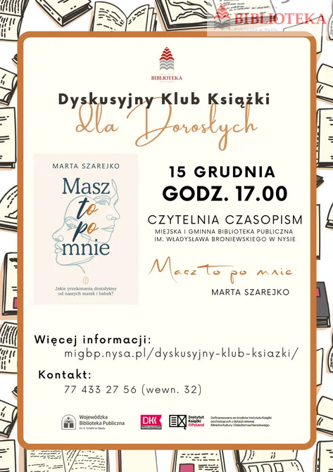 Spotkanie Dyskusyjnego Klubu Książki dla dorosłych - "Masz to po mnie - Marta Szarejko